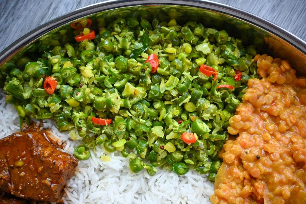 One of the things that make Beans Mallum special is its beautiful green color, which makes it really appetizing. Personally, one of my favorite ways to enjoy Beans Mallum is with a plate of hot white rice, a generous helping of red lentil curry, and a spicy fish or salmon curry for that extra kick. To make it even better, serve it with some crispy fried papadam and a few dried chilies for added flavor and crunch. This combination creates a meal that’s incredibly tasty and satisfying. I’m sure if you give it a try, you’ll discover a new favorite dish!